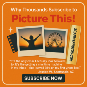 Subscribe to Picture This! by ScanMyPhotos.com — the photo newsletter that brings nostalgia and expert tips to your inbox. Learn how to protect and digitize your old photos, discover exclusive discounts, and read inspiring stories. It’s free, fun, and filled with helpful ideas to preserve your memories forever. This newsletter is your secret weapon whether you’re just getting started or already scanning. Join the thousands already in — subscribe today.