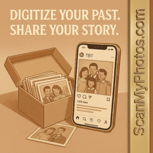 Photo scanning, digitize old photos, ScanMyPhotos.com, share memories online, best photo scanning service, how to scan photos for Instagram, Instagram #TBT tips, social media photo ideas, scan old prints for digital albums, digital family archive, social engagement from old pictures, scanning shoebox photos, Instagram engagement boost, visual storytelling, nostalgic content creation, digital photo archive tips, family photo preservation.